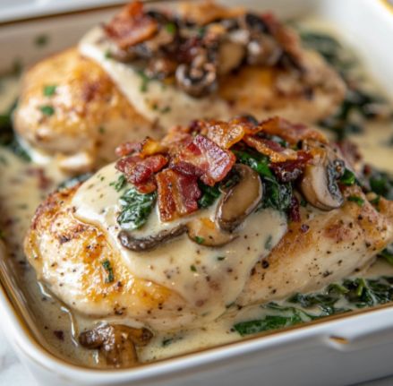 Geschmortes Hähnchen mit Rahmspinat, Speck und Champignons: Ein herzhaftes Wintergericht