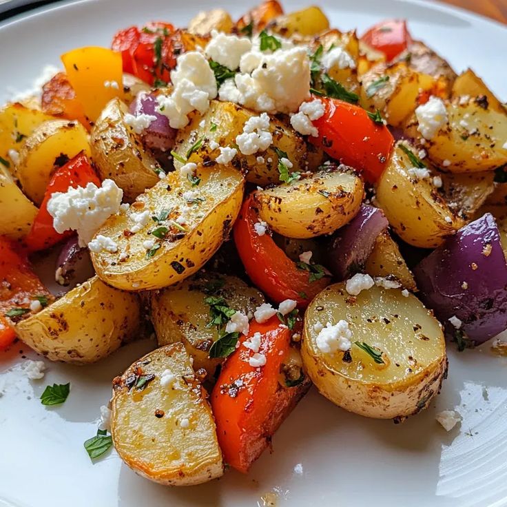 Knusprige Feta-Kartoffeln mit Ofengemüse
