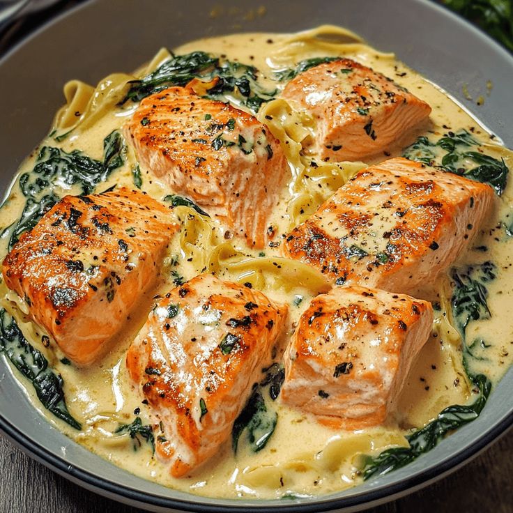 Zutaten:• 2 Lachsfilets• 200 g frischer Spinat• 200 ml Sahne• …