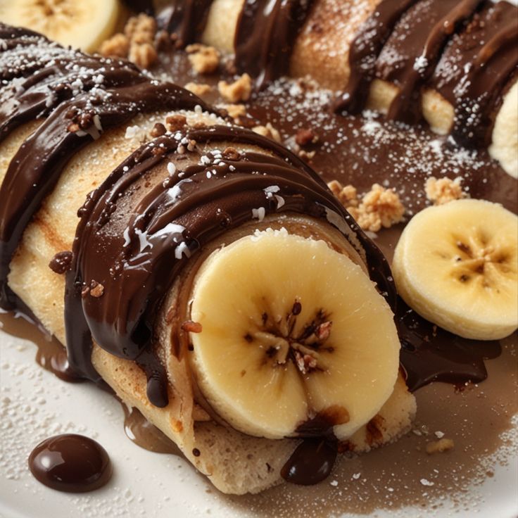 Ein saftiger Biskuit mit Schokocreme, Bananen und Sahne – ein …